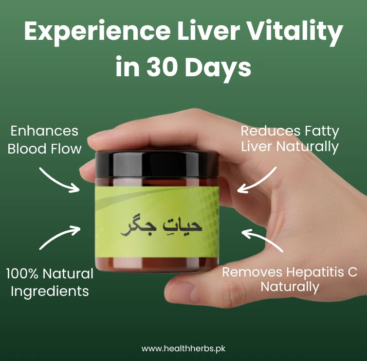 Hayat-e-Jigar is a natural herbal supplement specially formulated to support liver health, improve digestion, and help with common liver-related issues such as weakness, hepatitis, and fatty liver.